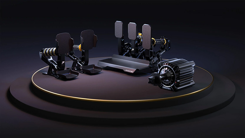 Podium Pedals -polkimet on puolestaan kehitetty Fanatecin mukaan yhteistyössä ammattilaiskuskien kanssa. Kolmen polkimen setin jarrupoljin on sen mukaan ensimmäisen alumiinista taottu poljin simulaattoripoljinten historiassa ja se yhdistettynä yli 200 kg:n load cell -tekniikkaan tarjoaa paitsi voimaa, myös tarkkuutta. Elastomeeriin perustuva kompression hallintajärjestelmä varmistaa puolestaan jarrupolkimen pysyvän käyttäjälle turvallisena kuormasta riippumatta. Lisäksi polkimista julkaistaan kahden polkimen Podium Pedals Formula -erikoisversio kahdella hiilikuituisilla pinnoilla ja kantapääkupeilla terästetynä.