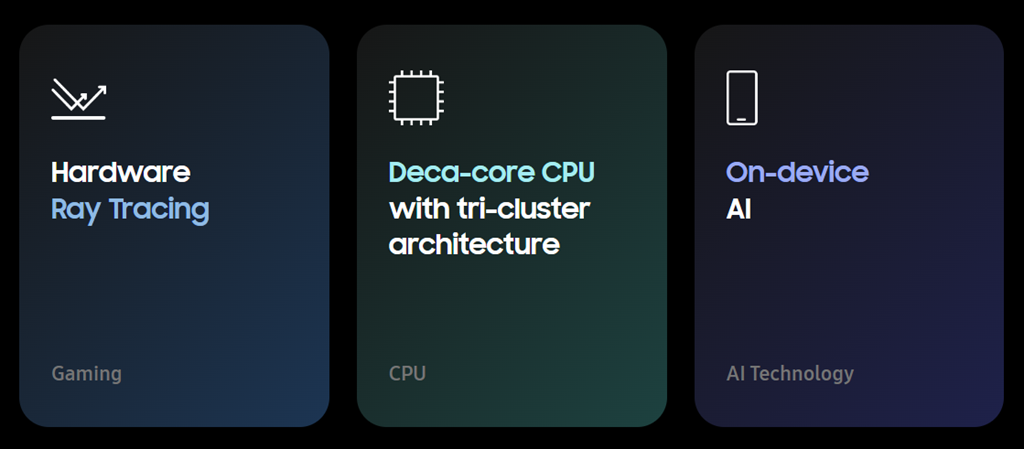 Exynos 2400:n prosessorissa on kymmenen ydintä, jotka on jaoteltu kolmeen rykelmään eli ”tri-cluster”-muotoon, jolla suorituskykyä ohjaillaan sovellusten vaatimustason mukaan. Yksi iso Cortex-X4-ydin vastaa suorituskykyä vaativista tehtävistä 3,2 GHz:n maksimikellotaajuudella. Viisi keskikokoista Cortex-A720-ydintä on jaoteltu kahteen 2,9 GHz:n ja kolmeen 2,6 GHz:n maksimikellotaajuuden ytimeen. Neljä pientä Cortex-A520-ydintä toimivat energiatehokkaasti kevyessä käytössä 2,0 GHz:n maksimikellotaajuudella.