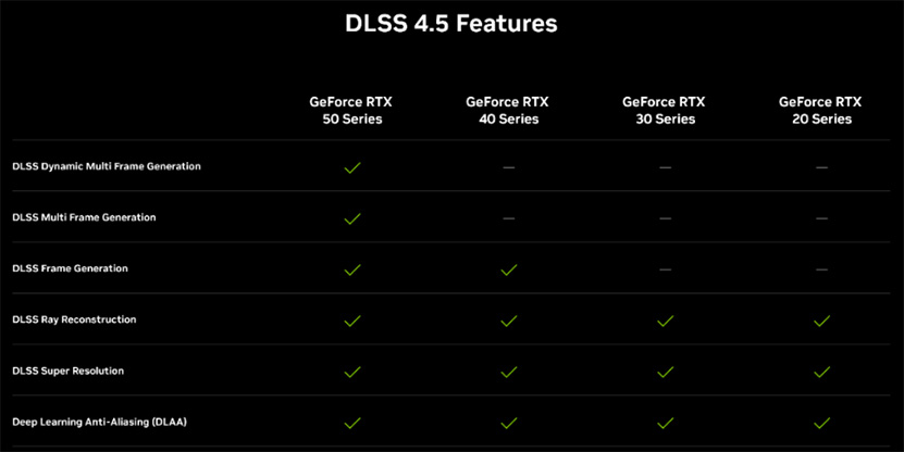 DLSS 4.5:n Dynamic Multi Frame Generation ja Frame Generation 6X vaativat GeForce RTX 50 -sarjan näytönohjaimen.