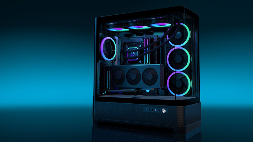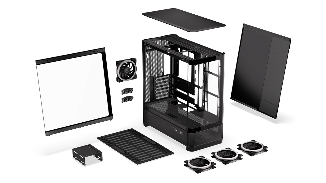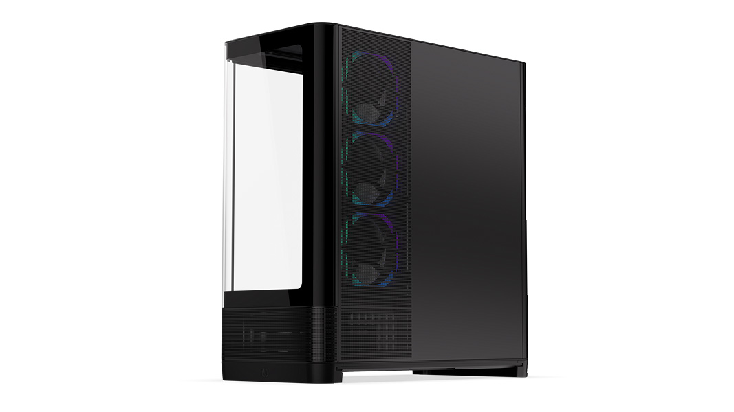 Kotelon lasinen etupaneeli kaareutuu kotelon vasemmalle kyljelle parhaiden näkymien takaamiseksi katselukulmasta riippumatta. Lasipaneelista löytyy kuitenkin sauma, sillä vasen kylkipaneeli on erillinen lasi. Kotelon I/O-liittimet on sijoitettu vasemman kyljen etuosaan.