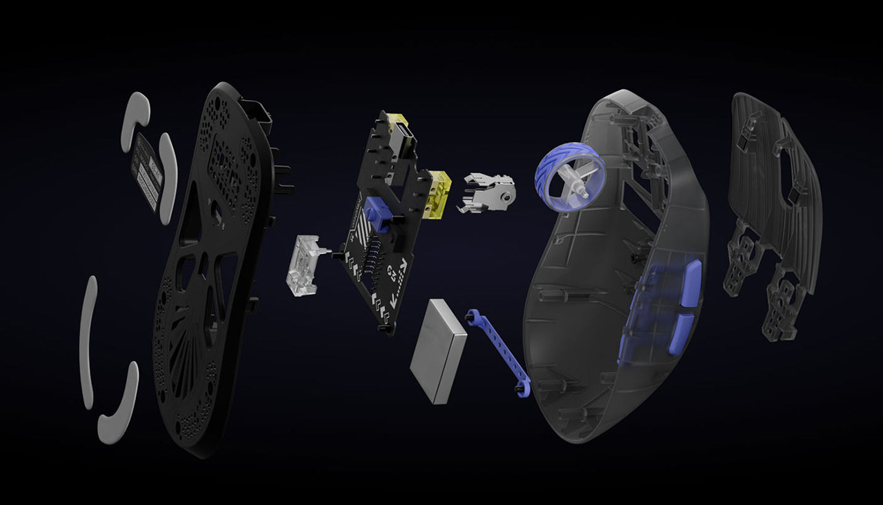 Huolimatta vaivaisesta 44 gramman painosta, hiiren runko ei ole reikäjuustoa ja sisältä löytyy mm. PixArtin lippulaivatason 3950-sensori.