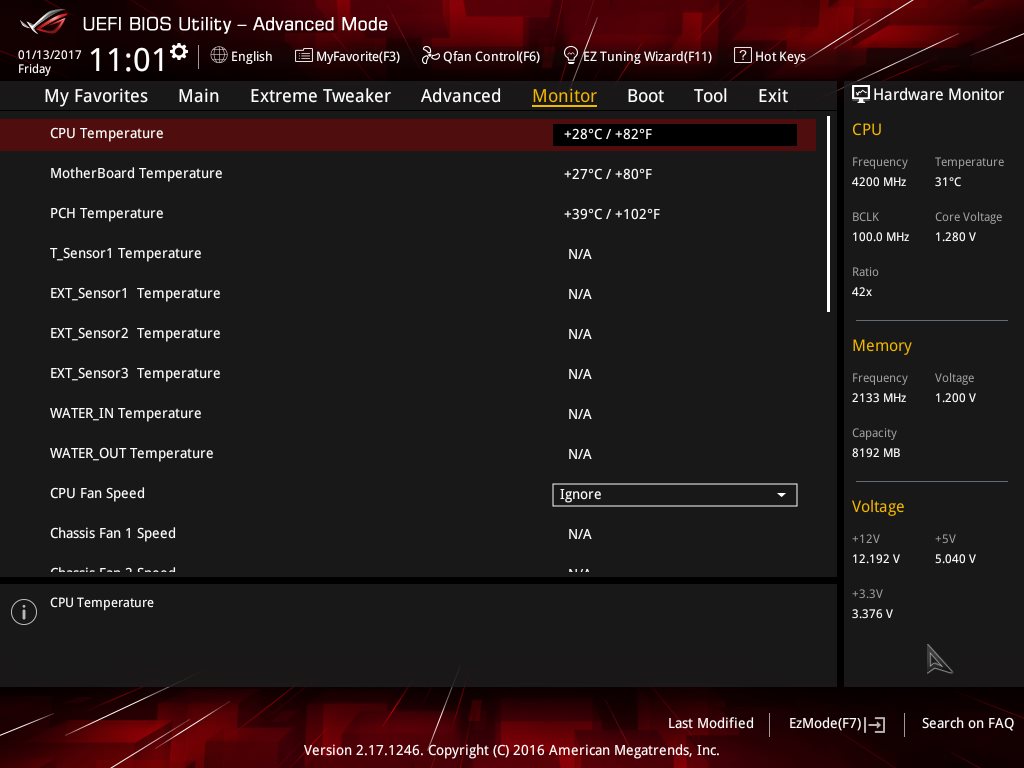 Asuksen Strix Z270F Gaming on varustettu yhteensä kuudella tuuletinliittimellä, jotka kaikki ovat PWM-ohjattuja. CPU_FAN-liitin tukee maksimissaan 12 watin tuuletinta ja yhden ampeerin virtaa. Jos käytössä on esimerkiksi AIO-nestekierto, pumpulle löytyy oma AIO_PUMP-liitin ja jäähdyttimen tuulettimelle suositellaan CPU_FAN-liitintä. Tuulettimia voi ohjata samoin kuin ROG Maximus IX Formulalla eli UEFI Biosista ja Windowsista AI Suite 3 -ohjelmalla käsin.