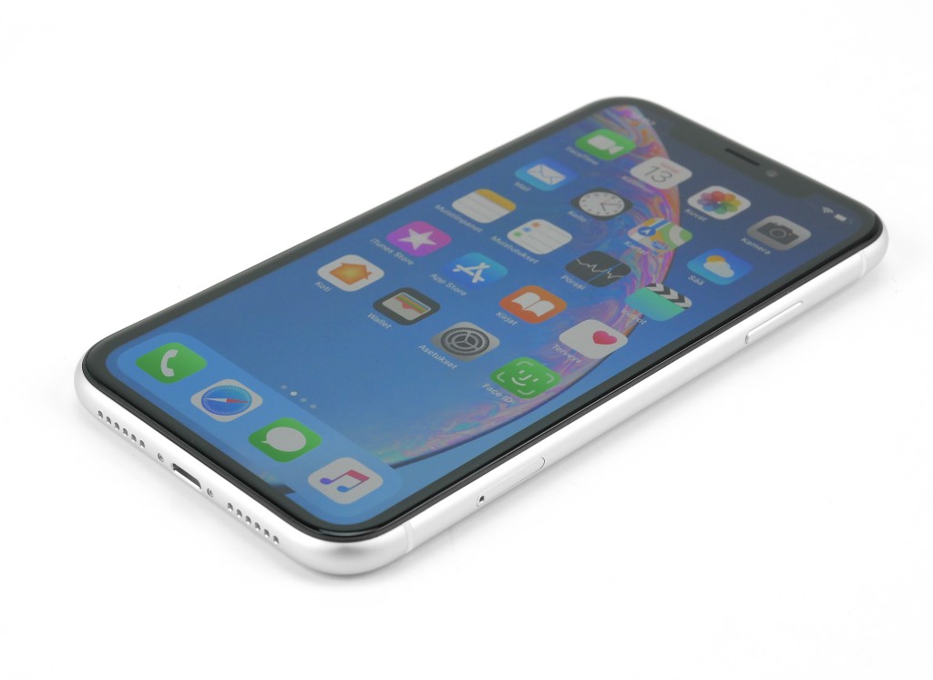 XR ei ole siis näyttökokoluokassaan erityisen pieni puhelin, josta kertoo myös alle 80 %:n jäävä näytön ja ulkomittojen välinen suhdeluku. Yhden käden käyttöä koskee pitkälti samat huomiot kuin XS Maxia – puhelin on siinä määrin leveä, että vastakkaisen reunan pyyhkäisyeleitä alkaa olla varsin hankala käyttää sujuvasti.