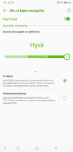 Akun kapasiteetiksi ilmoitetaan 3300 mAh, joka on saman kokoinen kuin edeltäjämallissa ja alempaa keskiluokkaa tämän näyttö- ja kokoluokan puhelimeen. Akku tukee 18 watin pikalatausta, mutta mukana toimitetaan valitettavasti vain tavallinen 10 watin laturi. Maininnan arvoisena ominaisuutena puhelin tukee ”älykästä” latausta, joka mukautuu käyttäjän käyttörytmiin ja osaa säätää latausnopeuden sen mukaan, kuinka pitkään puhelin viettää todennäköisesti latauksessa. Toisin sanoen esimerkiksi yöaikaan latausnopeus on hitaampi, jonka kerrotaan pidentävän akun kestoikää merkittävästi.
