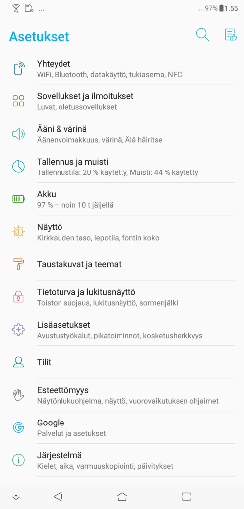 Käyttöliittymän perustoiminnot hoituivat laitteella sujuvasti ja tökkimättä. Vertasimme ZenFone 5:ttä rinnatusten Nokia 7 Plussan kanssa ja havaitsimme pieniä eroja sovellusten avautumisnopeudessa ja animaatioissa Nokian hyväksi, mutta toisaalta jo auki oleviin sovelluksiin palaamisessa ZenFonen hyväksi. Kokonaisuudessaan kaksikko oli yleisessä toimintanopeudessa varsin tasaväkinen.