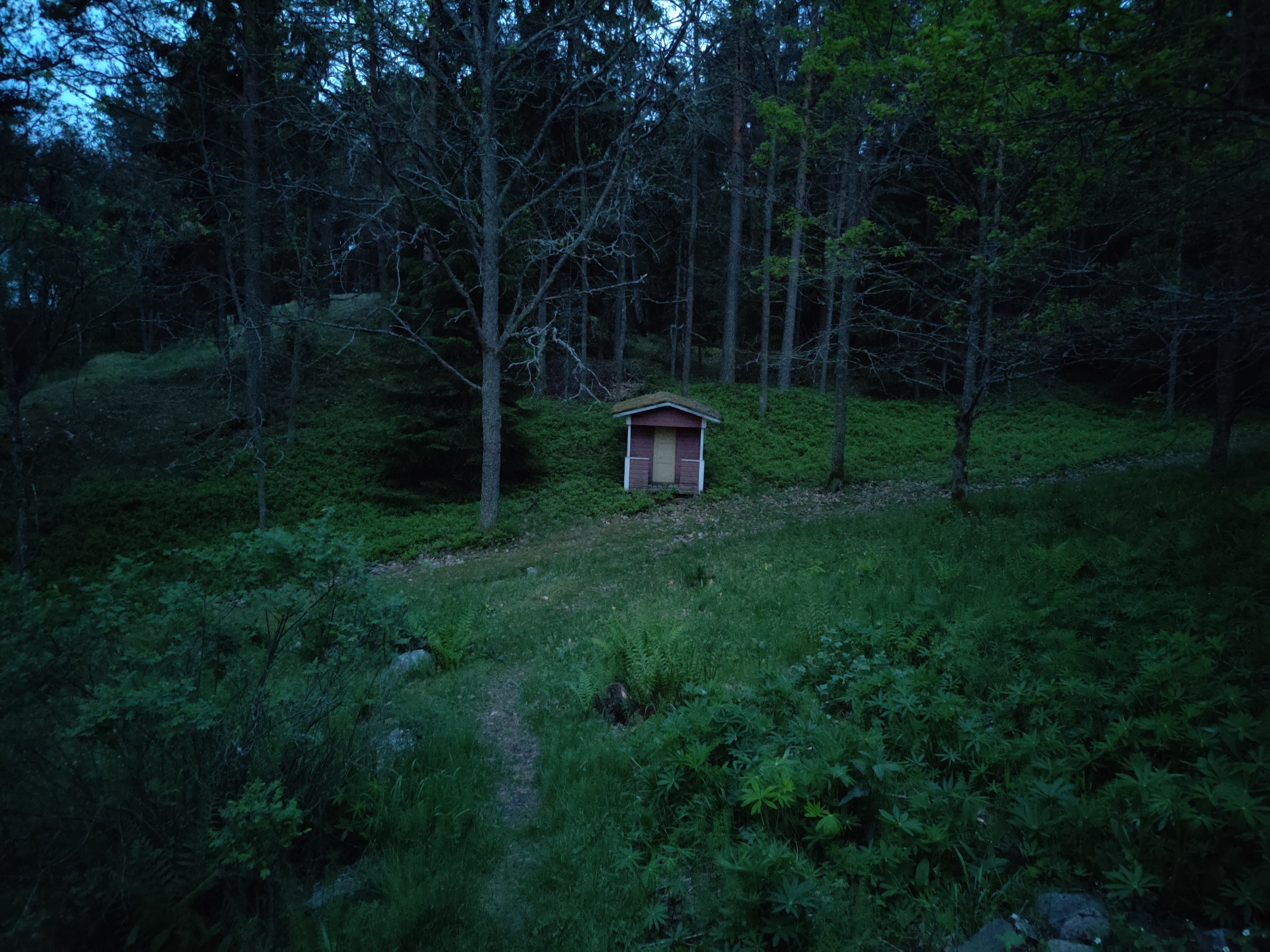 Kolmas kuvapari on otettu jo huomattavasti myöhempään auringon jo laskeuduttua, eikä tarjolla ollut enää kuin heikosti luonnonvaloa. Hämärässä OnePlus 7 pystyy taltioimaan kuviin huomattavasti paremmin valoa ja myös yksityiskohtien tallennus onnistuu vielä OnePlus 6T:tä paremmin, vaikkakin molempien tulos tässä kuvaustilanteessa on varsin puuroutunutta.