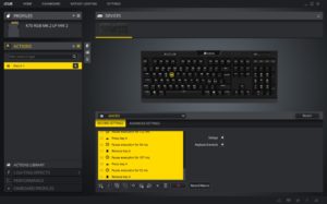 K70 Low Profilen ominaisuuksia hallitaan aiempien K-sarjalaisten tapaan Corsairin Utility Engine –sovelluksella (iCUE), joka on ladattavissa valmistajan sivuilta noin 320 megatavun kokoisena asennuspakettina. Kyseessä on vertailujoukon suurikokoisin ohjelmisto ja se vie asennettuna lähes 900 megatavua tallennustilaa. Samaa sovellusta voidaan hyödyntää myös Corsairin muiden tuotteiden asetusten hallintaan. Testijakson aluksi näppäimistön firmware-ohjelmisto päivitettiin versiosta 3.19 versioon 3.24.