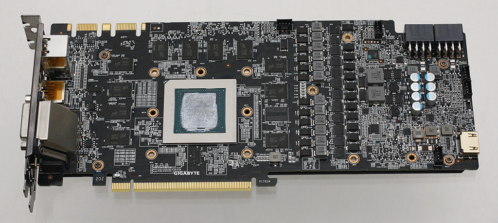 Gigabyte on onnistunut ahtamaan piirilevynsä aivan täyteen pintaliitoskomponentteja ja piirilevysuunnittelu edustaa täysin eri koulukuntaa MSI:hin verrattuna. Piirilevy on varustettu yhteensä 12-vaiheisella virransyötöllä, josta 10 vaihetta on pyhitetty GP102-grafiikkapiirille ja kaksi vaihetta GDDR5X-muisteille.