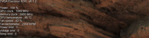 Todellisuudessa GP102-grafiikkapiirin kellotaajuus seilasi 3D-rasituksessa 1797-1835 MHz:n välimaastossa ja grafiikkapiirin lämpötila nousi korkeimmillaan 73 asteeseen. Tuulettimen kierrosnopeus nousi 10 minuutissa 65 %:iin (1721 RPM).