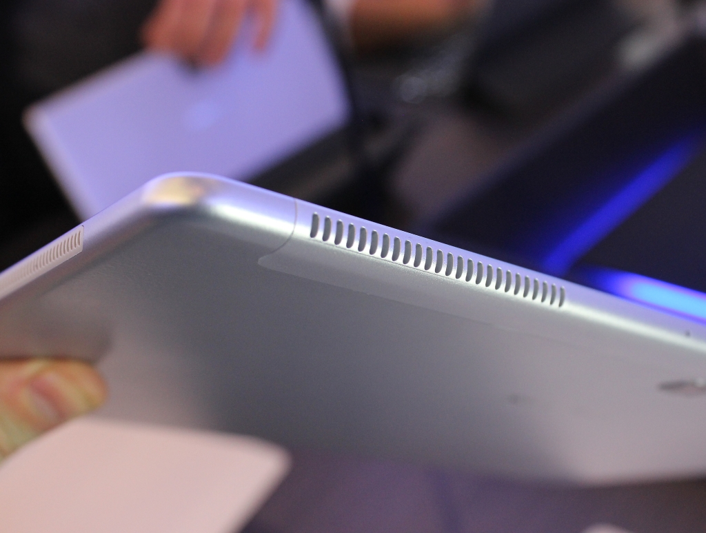 Tab S3:n runkorakenne on metallia ja se tuntuu mukavan tukevalta laitteen ohuus ja koko huomioiden. Tabletin molemmille lyhyille sivuille on sijoitettu kaksi AKG:n kanssa yhteistyössä suunniteltua kaiutinta. Laite osaa vaihtaa kaiuttimien äänentoiston sen mukaan, onko tabletti pysty vai vaaka-asennossa.