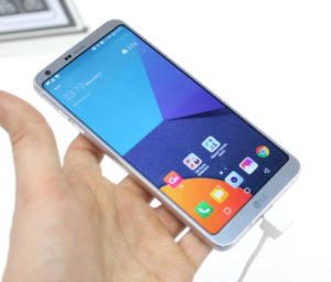 Toisin kuin useimmissa nykypäivän puhelimissa, G6:n näyttöä suojaavassa Gorilla Glass 3 –lasissa ei ole pyöristettyjä reunoja, joka korostaa hieman metallisen rungon reunojen kulmikkuutta. Messuympäristössä katsellessa näytön kuva vaikutti erittäin kirkkaalta ja värikylläiseltä.