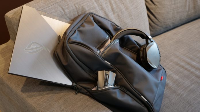 Kuten jo kerroimme, Asus ROG Strix Scar II -pelikannettavan suorituskyky riittää uusien korkean kuvataajuuden pelien pelaamiseen, mutta se painaa silti vain 2,4 kg. 15-tuumainen kone mahtuu mainiosti reppuun.