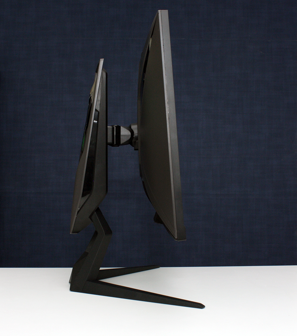 Näytön jalan alaosa on metallia ja siitä löytyy aukko johtojen hallinnalle. Jalan yläosaan on muotoiltu metallinen kantokahva, jonka ansiosta näytön kuljettaminen on helppoa. Näytön syvyys jalkoineen on noin 22,5 cm. Paneelin keskiosa on alimmassa asennossa 26,5 cm korkeudella ja ylimmässä asennossa 39,5 cm korkeudella, joten säätövaraa korkeussuunnassa on noin 13 cm verran.