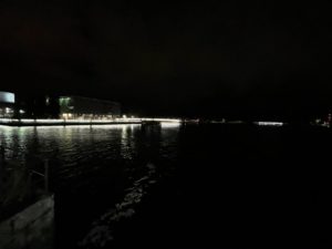 Valitettavasti myös ultralaajakulmakameralla on yökuvaustilaa käyttäessä havaittavissa samaa pilvimassan liiallista valottamista kuin pääkameralla. Taivaan osalta yömaisemissa kuva olikin usein hieman realistisempi ilman yökuvaustilaa, mutta pääkamerasta poiketen ultralaajakulmakameran kyvyt hämärässä tulevat selvästi vastaan ilman yökuvaustilan tarjoamaa lisäkäsittelyä. Perustilassa kuvien kohinamäärät kasvavat hämärässä suuremmalta näytöltä selvästi nähtäviksi, minkä lisäksi myös yksityiskohtien määrä laskee selvästi.