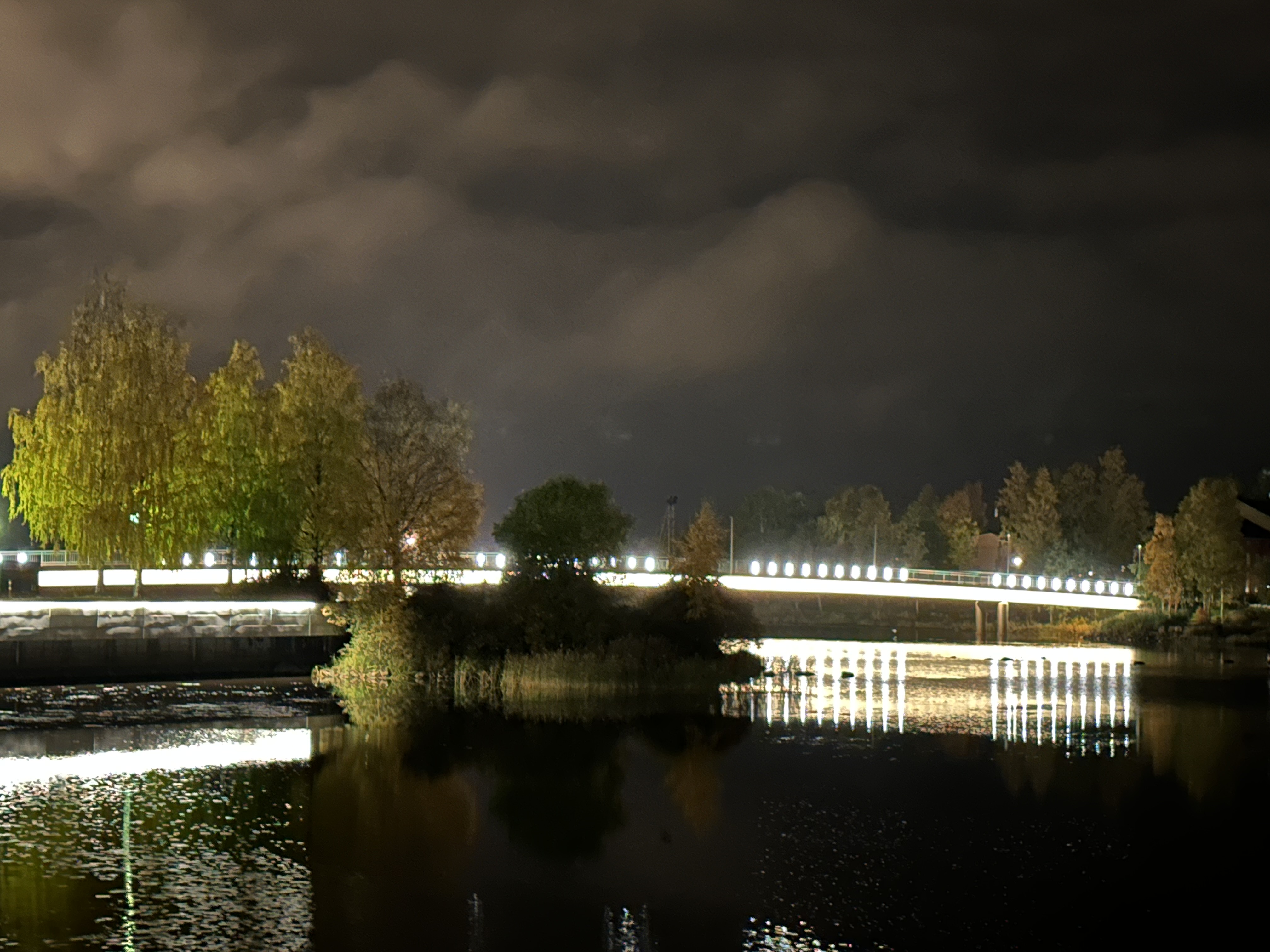 Ilman yökuvatilaa ultralaajakulmakameran värimaailma jää haaleaksi, mutta valoa ja yksityiskohtia kertyy kuitenkin edelleen käyttökelpoisesti, mikäli ympäristössä on tarjolla kaupungin katuvalot. Hämärämmässä ympäristössä kuvat jäävät todella tummiksi ja niihin ilmestyy jo ilman rajausta nähtävää luminanssikohinaa, kuten vesistökuvassa on nähtävissä. Viime vuoteen nähden ultralaajakulmakameran hämäräsuorituskyky on kuitenkin parantunut todella selvästi ja hämäräkuvista voi saada täysin käyttökelpoisia ilman yökuvatilaakin.
