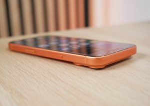 Tarjolla olevia värivaihtoehtoja on kolme – testikappaleemme edustama ”kosminen oranssi”, hopeanvärisen rungon valkoiseen takalasiin yhdistävä ”hopea” sekä ”mustansininen”. Hieman yllättävänä ratkaisuna Apple on jättänyt tyypillisesti varsin suositun mustan tai tummanharmaan värivaihtoehdon kokonaan pois valikoimasta.