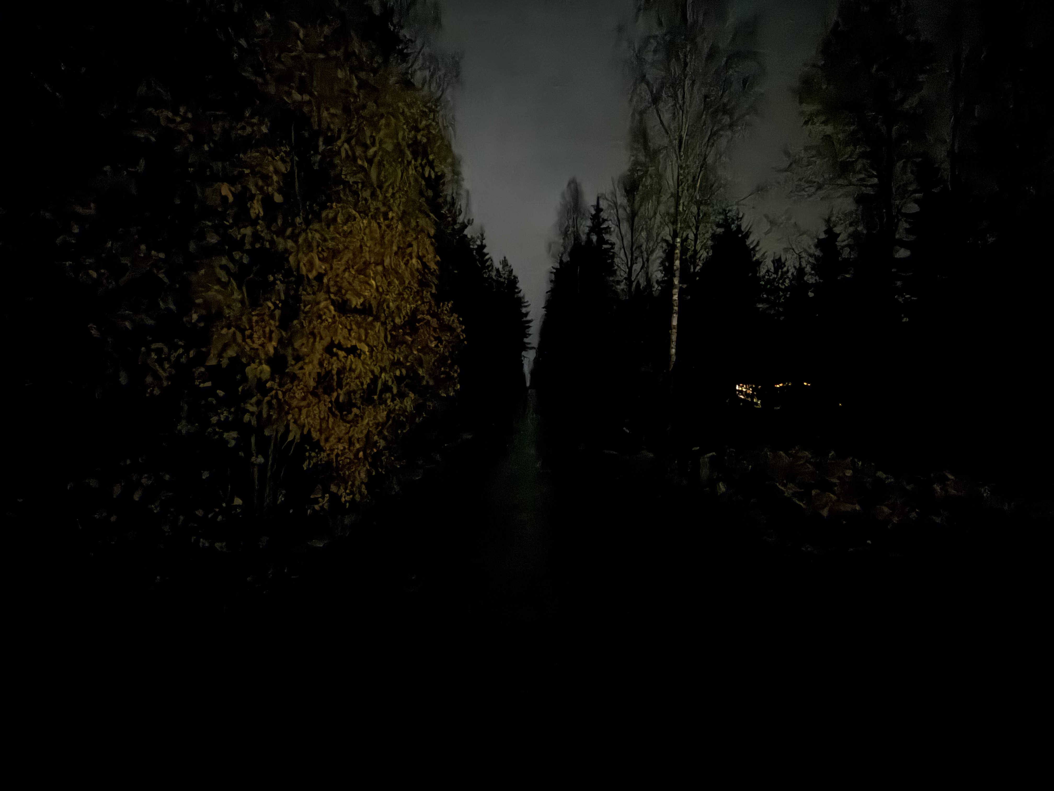 Heikossa valaistuksessa pääkamera suoriutuu edelleen erinomaisesti. Värit toistuvat edelleen luonnollisesti ja prosessointi on kypsää, eikä pyri silottelemaan kohinaa liiallisesti, jolloin myös yksityiskohdat säilyvät paremmin. Kirkkailla valonlähteillä, kuten katuvaloilla, on taipumusta luoda kuviin pieniä heijastuksia. Hyvin heikossa valaistuksessa kamera pystyy taikomaan esiin asioita, joita ei ihmissilmällä pysty pimeyden seasta havaitsemaan.