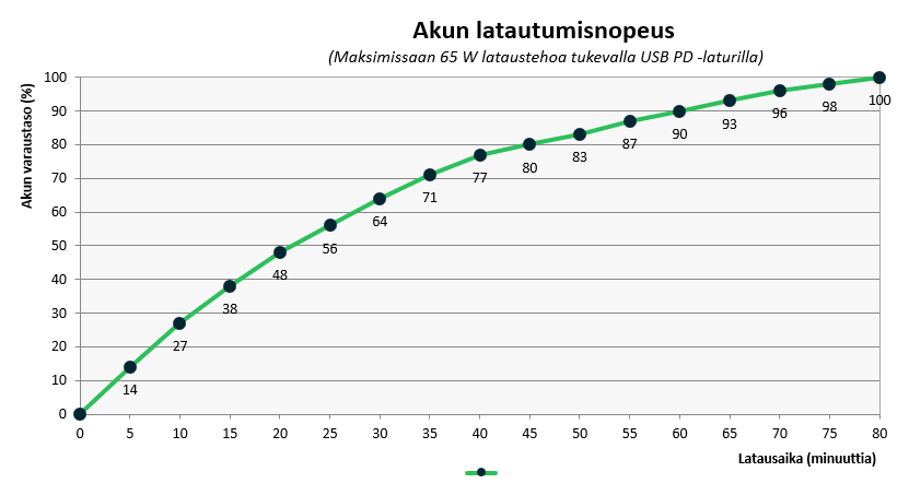 - Edeltäjistä parantuntu akun latausnopeus 0–50% välillä varauksin