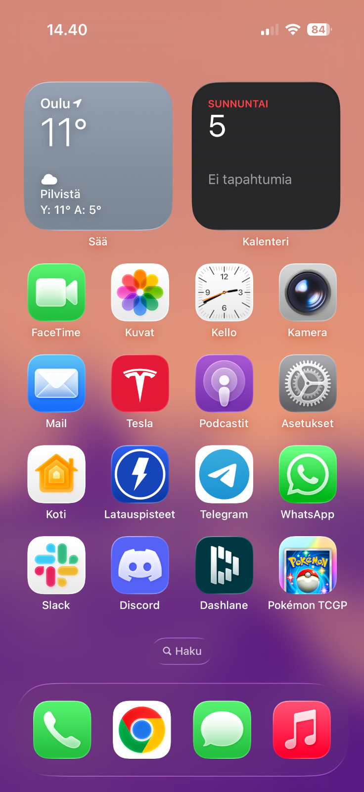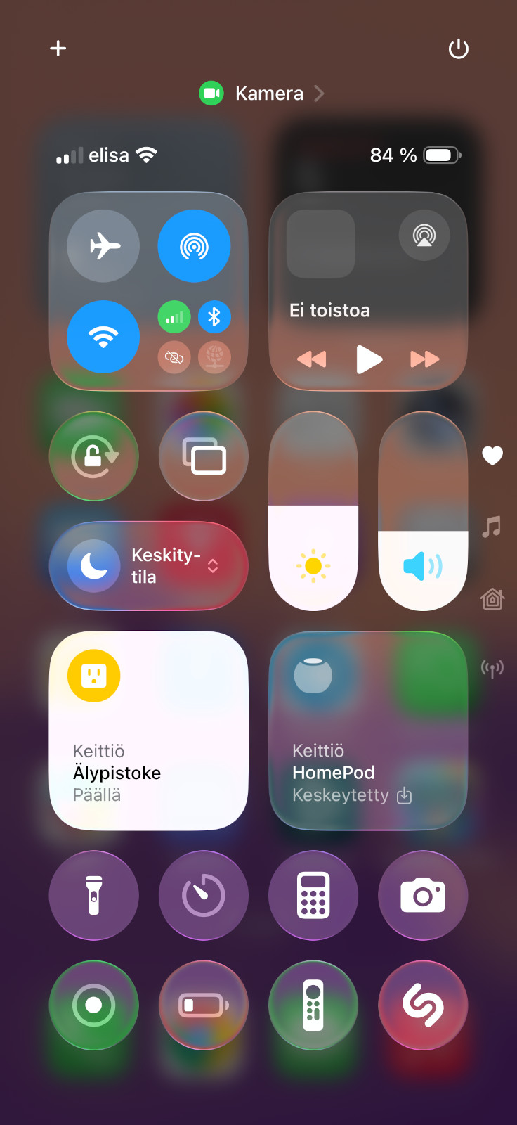 Ohjelmistona iPhone 17:ssä on Applen uusin iOS 26, joka tuo mukanaan suurimman ulkonäköpäivityksen sitten käyttöliittymän kaksiulotteisen minimalistiseksi päivittäneen iOS 7:n. Uudistettu ulkoasu kulkee nimellä Liquid Glass ja nimensä mukaisesti se hyödyntää huomattavan paljon lasimaisia läpinäkyvyyksiä. Ulkoasun uudistus on varmasti mielipiteitä jakava, mutta itselleni lasiefektit toimivat kuitenkin hyvin.