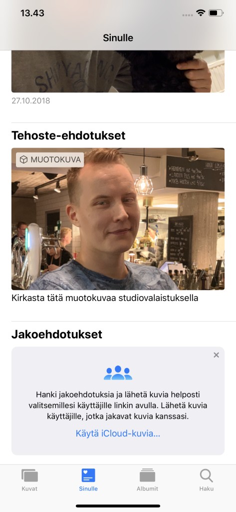 Ja tämä onkin varmaan suurin syy, miksi en pysty iOSsia käyttämään. Google Photos -synkki backuppaa kaiken, kun Androidilla saan vaan kameran kuvat + omavalitsemat kansiot. iCloud-synkkaus mikälie ei taida toimia yhtään paremmin? Ei ainakaan vuosi sitten, tai en vaan osannut.