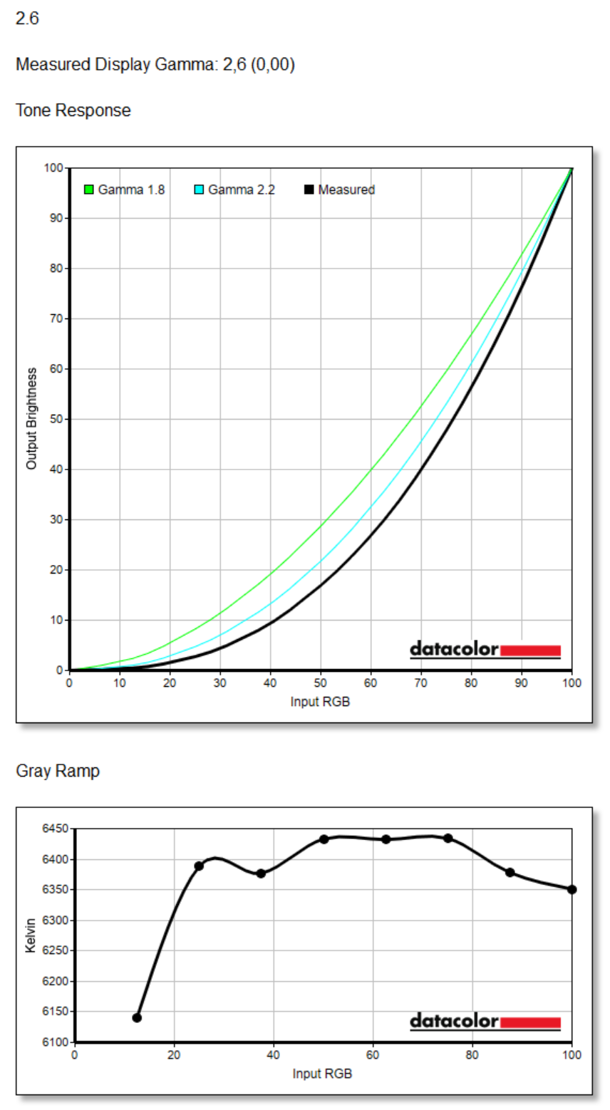 Näytön eri mittaukset suoritimme SpyderX Elite- ja Xrite i1 Display Pro -näytönkalibrointilaitteiden avulla. Kaikki muut mittaukset suoritettiin SpyderX Elitellä paitsi kontrastisuhde, kirkkaus ja mustan taso, joissa käytettiin i1 Display Prota ja DisplayCAL-ohjelmistoa tarkempien tuloksien saavuttamiseksi. Mittaukset ovat suoritettu kalibroimattomalle näytölle eli kuvastavat sitä mitä kuluttaja paketista saa.