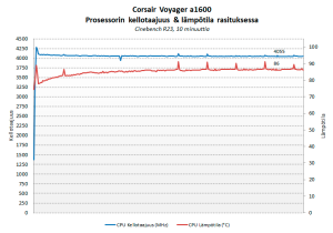 Cinebench R20 -testissä aiemmin Corsair Voyager a1600:n tulos oli kaikkien ytimien testissä 5317 pistettä, joka oli 6 % parempi tulos kuin Asuksen samalla prosessorilla varustetulla ROG Zephyrus -kannettavalla.