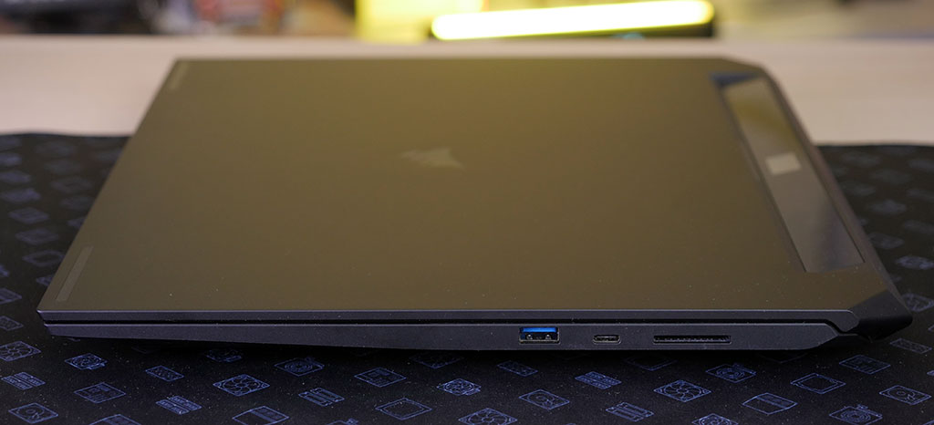 Laitteen vasemmasta kyljestä löytyy virtaliitin, kaksi USB 4 Type-C -liitintä Thunderbolt 3 tuella ja yhdistetty mikrofoni- ja kuulokeliitin. Oikeassa kyljessä on USB 3.1 Type-A -liitin, USB 3.2 Type-C -liitin sekä SD-kortinlukija. Perinteisiä USB Type-A -liittimiä on siis laitteessa vain yksi kappale. Huomionarvoista on, että kannettavasta ei löydy esimerkiksi HDMI-näyttöliitintä tai RJ-45-verkkoliitintä.