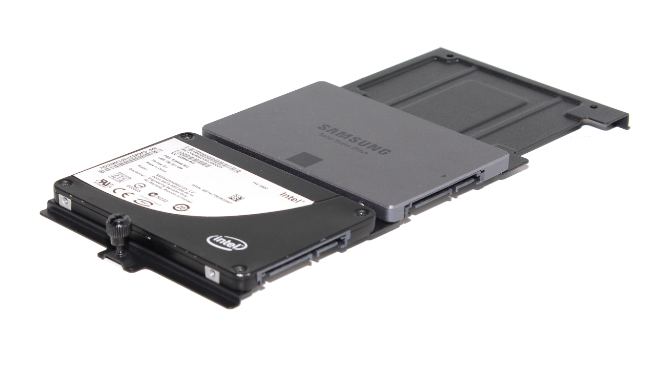 2,5 tuuman levyille tarkoitettu kehikko on kiinni yhdellä sormiruuvilla sekä kahdella metallikynnellä emolevyn taustapuolella. Levyjen kiinnitys kehikkoon tapahtuu tavallisilla ruuveilla. Mukavana yksityiskohtana sormiruuvi pysyy myös avattuna kiinni kehikossa. Negatiivisena huomiona totesimme, että 2,5 tuuman levykehikko pääsee paikalleen kiristettynä hieman ”lonksumaan ” toisen pään metallikynsien kohdalta, joka saattaa aiheuttaa pahimmassa tapauksessa resonointia kotelon rakenteisiin.