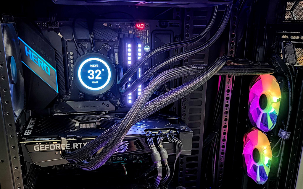 Näytönohjainten testikokoonpano on kasattu Cooler Masterin Cosmos C700P -kotelon sisälle, jonka etupaneelissa kaksi 140 mm:n kotelotuuletinta imee viileää ilmaa kotelon sisuksiin ja takapaneelissa yksi 140 mm:n tuuletin puhaltaa lämmintä ilmaa ulos. Testikokoonpanona toimi NZXT:n Kraken Z63 AIO -nestekierrolla jäähdytetty AMD:n 12-ytiminen Ryzen 9 5900X -prosessori asennettuna Asuksen ROG Crosshair VIII Hero -emolevylle ja 32 gigatavua DDR4-3600-nopeudella toimivaa keskusmuistia. Käyttöjärjestelmänä on käytössä 64-bittinen Windows 10 Pro asennettuna Corsairin 2 teratavun MP600 M.2 SSD:lle. Kokoonpanon virransyötöstä vastaa Corsairin 1000 watin HX-virtalähde.