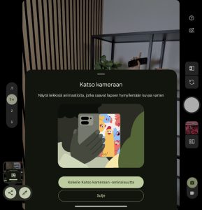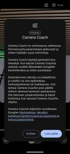 Kameraan liittyvänä Pixel 10 -malliston uutena erikoisominaisuutena Camera Coach -ominaisuus analysoi kuvausnäkymän sisältöä ja pyrkii antamaan käyttäjälle vinkkejä ja portaittain eteneviä ohjeita mm. kuvakulman ja rajauksen osalta parhaan otoksen aikaansaamiseksi. Itse en kokenut sitä erityisen hyödylliseksi, mutta kokemattomammat kuvaajat saattavat saada ominaisuudesta iloa. Jo Pixel 9 -mallistosta tuttuja tekoälyä hyödyntäviä kuvausominaisuuksia ovat mm. henkilön lisäämisen ryhmäkuvaan mahdollistava Add Me, ryhmäkuvan kasvojen ilmeiden muokkaamisen mahdollistava Best Take, joista molemmat tekevät minkä lupaavat, sekä Pro-mallien erikoisominaisuudet Video Boost sekä Super Res Zoom, jotka testattiin jo Pixel 9 Pro -mallien yhteydessä.