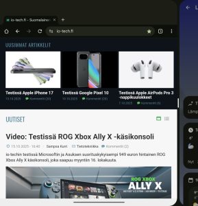 - 256 tai 512 Gt UFS 4.0 -tallennustilaa (256 Gt:n mallissa vapaana noin 228 Gt)
