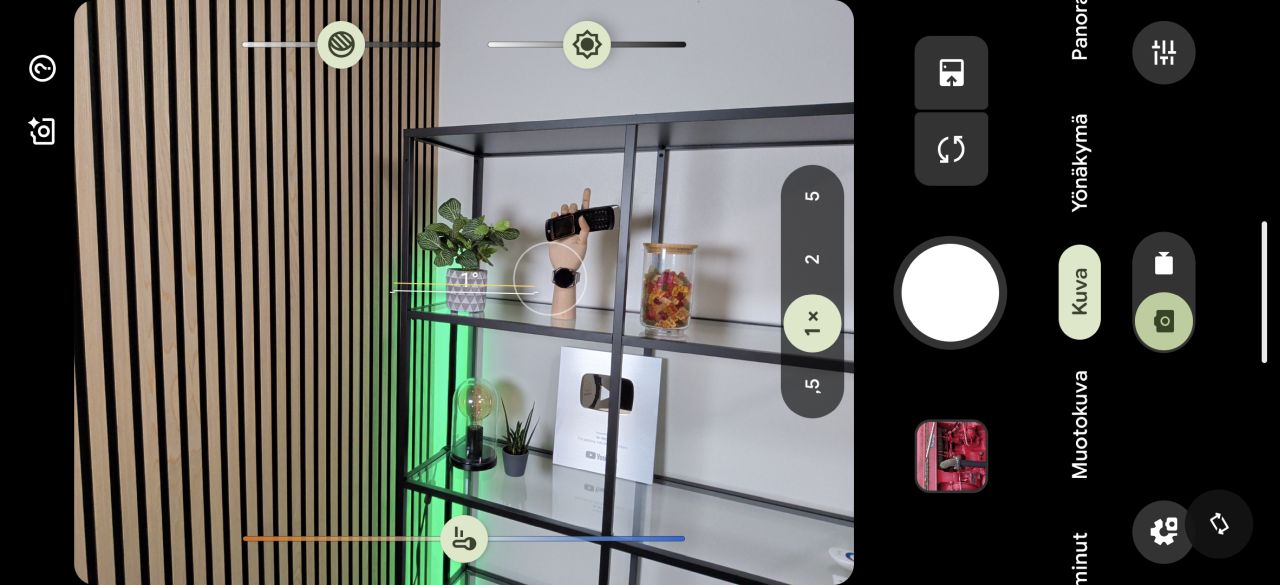 Kuvausnäkymässä on tarjolla myös pääkameralta rajattava 2x-tila, joka täydentää pääkameran ja 5x-telekameran väliin jäävää polttovälikuilua. Valitettavasti edeltäjämallin tapaan sen toteutus ei ole edelleenkään kovin kummoinen, sillä 1x-tilassa pääkameralla otetusta kuvasta tehtyyn rajaukseen verrattuna yksityiskohtia ei tallennu juurikaan enempää, vaan prosessointi lisää lähinnä kuvaan kontrastia ja terävöintiä, joka saa kuvan äkkiseltään näyttämään yksityiskohtaisemmalta mitä se todellisuudessa onkaan.
