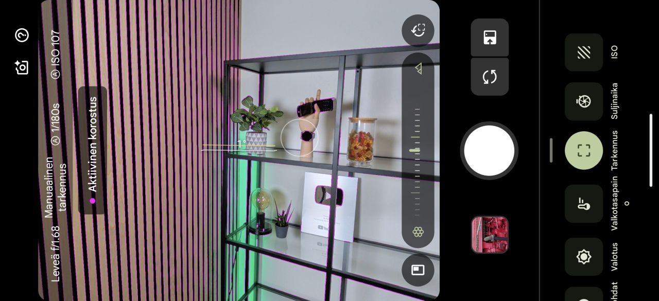 Koska kyse on Pro-mallista, kuuluu varustukseen myös manuaalisäädöt, jotka eivät tosin sijaitse omassa kuvaustilassaan, vaan valikossa peruskuvaustilan yhteydessä. Maininnan arvoisena seikkana muista Pro-malleista löytyvää mahdollisuutta täyden 50 megapikselin resoluution kuvien ottamiseen pääkameralla ei Foldista löydy.