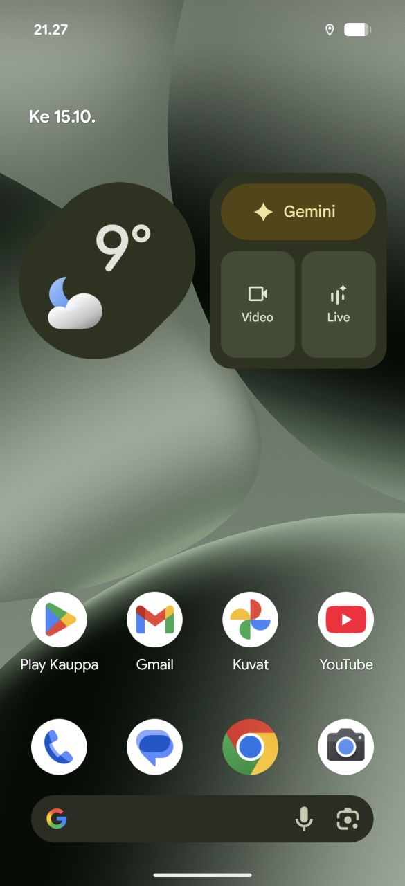 Tekoälyominaisuuksien peruskalustoon kuuluu Gemini-avustaja, joka ymmärtää näytöllä olevan sisällön kontekstia ja osaa esimerkiksi tehdä yhteenvedon YouTube-videon sisällöstä, ja nyt uutena ominaisuutena Gemini Live -keskustelutila tarjoaa ympäristön vastavuoroisen tarkastelun ja analysoinnin kameran läpi, jolloin Gemini osaa myös ohjeistaa ja tarvittaessa korostaa näkymässä asioita. Testeissämme reaaliaikainen avustaja oli kuitenkin välillä melko pihalla ja opasti esimerkiksi kameralla kuvatun toisen Pixel-puhelimen asetusvalikon sijainnin aivan väärin. Kuvagalleriassa on tarjolla entiseen tapaan tekoälyominaisuudet kuvien sisällön muokkaamiseen ja lisäämiseen – osa niistä tarvitsee päällä olevan kuvien pilvivarmuuskopioinnin, sillä muokkaukset tehdään pilvessä.