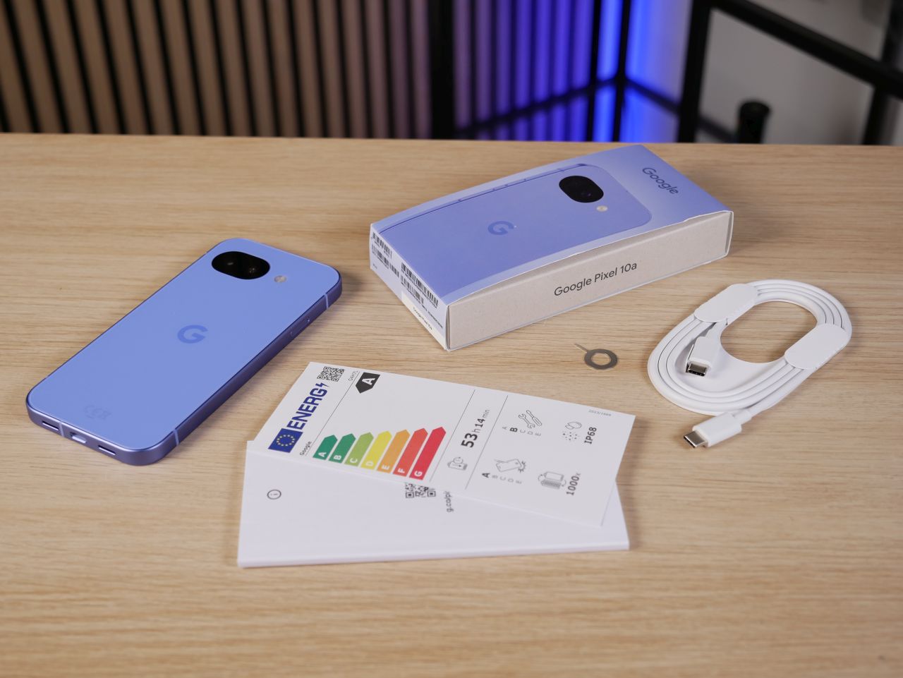 Pixel 10a:n tuotepakkauksen toteutus on tuttu aiemmista Pixel-malleista. Vaalean pahvinvärisen sisäpakkauksen ympärillä on värillinen pahvikääre, joka paljastaa sisällä olevan puhelimen värin. Kääreen avaamiseksi on ensin repäistävä irti taustapuolella oleva sinetti. Pakkaus on täysin muoviton.