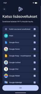 Esiasennettu sovellustarjonta luottaa luonnollisesti vain Googlen omiin sovelluksiin – puhelimessa ei siis ole esiasennettuna mitään kolmannen osapuolen bloatwarea.