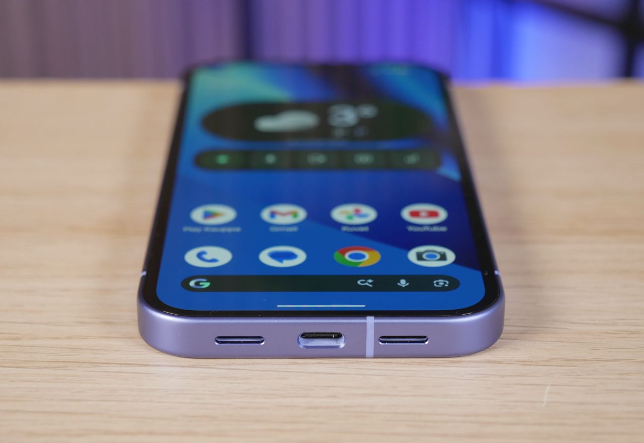 USB-C-liitäntä tukee edellisten sukupolvien tapaan USB 3.2 gen 1 -nopeuksia (5 Gbit/s) sekä Displayport-kuvaulostuloa, joka on edelleen melko harvinaista tämän hintaluokan puhelimissa.