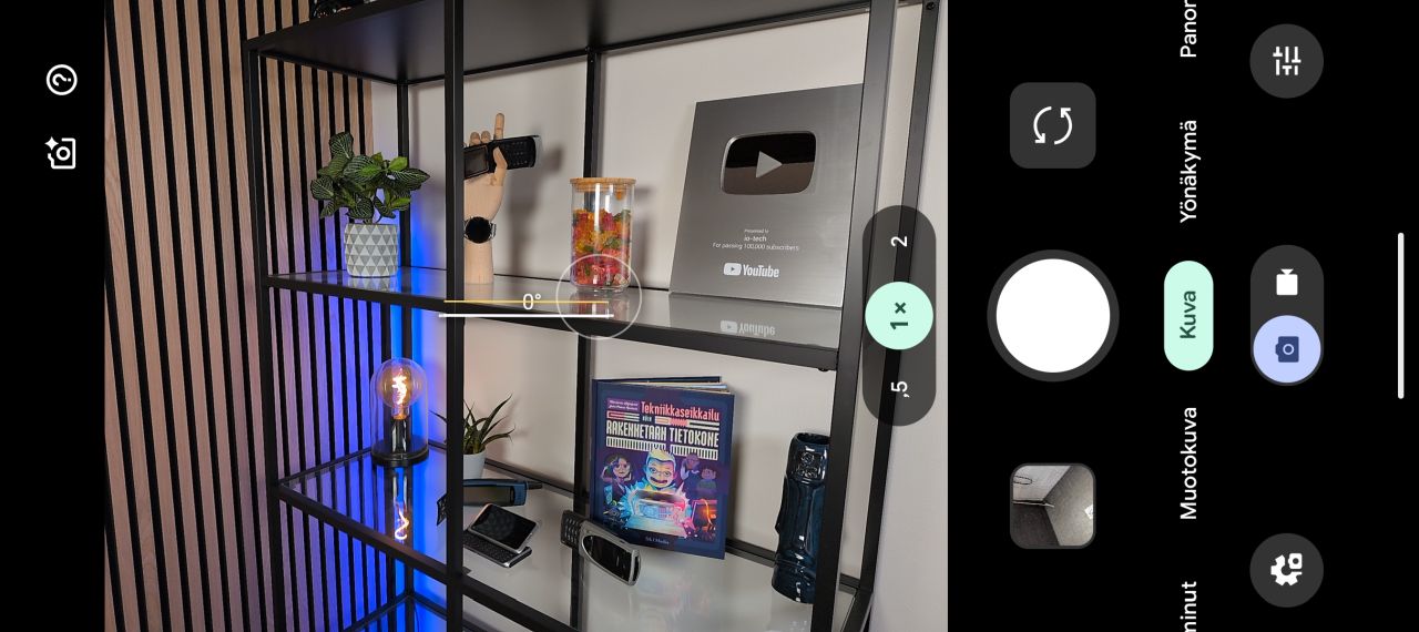Pixel 10a:n kamerasovellus on pysynyt käytännössä muuttumattomana Pixel 9a:n ajoista. Käyttöliittymän painikkeiden muoto oli vielä Android 15 -aikoina hieman erilainen, mutta Android 16 -päivitysten myötä niiltäkään osin 9a:n kamerasovelluksessa ei ole mitään eroa.