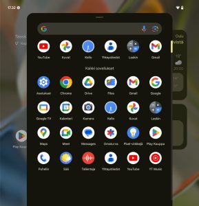Huomion arvoisena seikkana kilpailijoista poiketen Pixelin sisänäytöllä on mahdollista ajaa vain kahta sovellusta rinnakkain. Omaan käyttööni tämä on täysin riittävä määrä sovelluksia, mutta kovemman luokan moniajajille jako kahteen voi tuntua harmilliselta rajoitteelta.