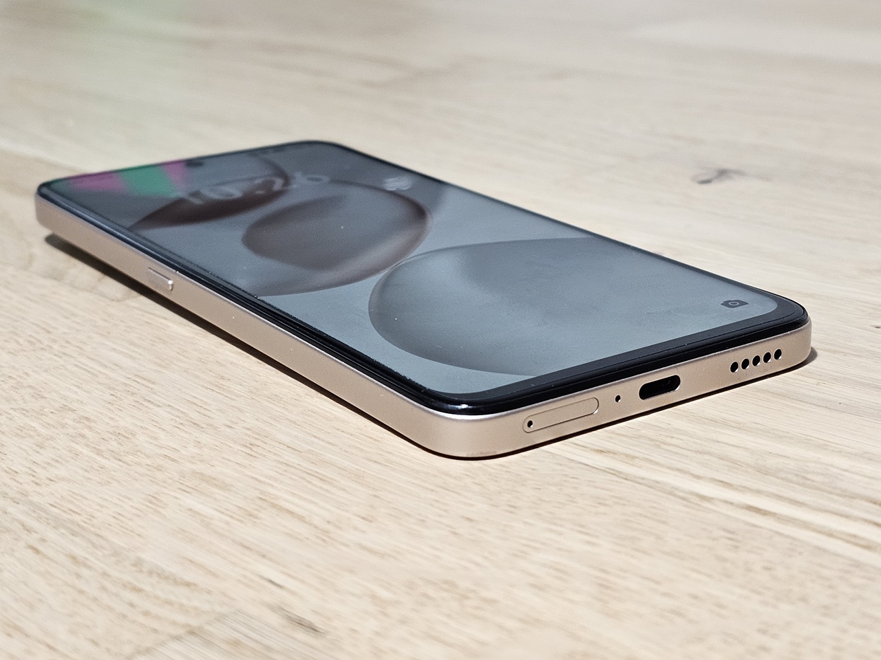 Vasemmalla kyljellä sijaitsee erillinen AI-painike, jota ei viime vuoden 200 Smartissa ollut. Painiketta käsitellään tarkemmin artikkelin ohjelmisto-osiossa. Ylä- ja alapäädyistä löytyy stereokaiuttimet, joiden äänenlaatu on riittävän hyvää halvalle puhelimelle, mutta ei erityisen korvia hivelevää. Kaiuttimille mainostetaan myös ”400 %:n äänenvoimakkuustilaa”, joka kytkeytyy päälle, kun volyymin vääntää tappiin. Ääntä kyllä lähtee toiseksi korkeimpaan pykälään verrattuna, mutta samalla laatu myös kärsii pahasti, eikä esimerkiksi musiikin kuuntelu kaiuttimilla ole kovinkaan häävi kokemus.