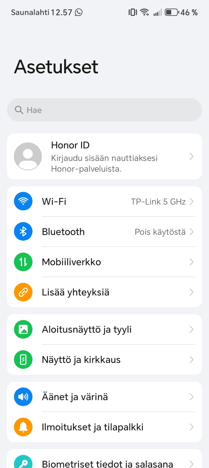 • Akku: 6500 mAh, 35 W:n langallinen lataus (Honor SuperCharge)