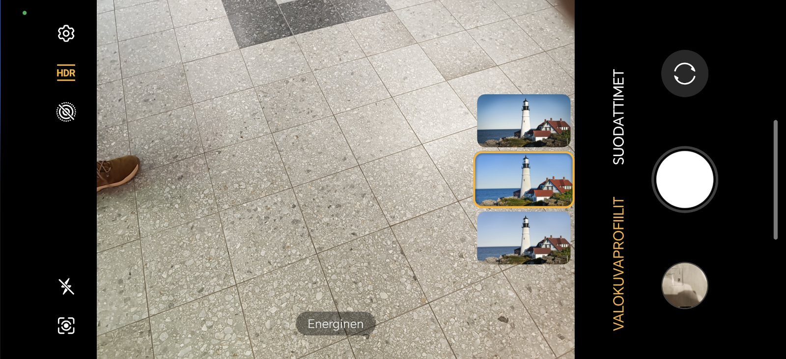 Kamerasovellus Magic7 Prossa on pääpiirteiltään tuttu, mutta muutoksiakin on tapahtunut. Selkeimpänä liene kameravalitsimeen mukaan tuotu pääkameraa käyttävä pääkameran ja telekameran väliin sijoittuva 2x-tila. Toinen uudistus löytyy kameravalitsimen yläpuolelta. Painikkeen takaa kamera tarjoaa kolme erilaista valokuvaprofiilia, jotka vaikuttavat otettujen kuvien värimaailmaan. Vaihtoehtoja ovat luonnollinen, energinen ja aito, joista viimeisimmän nimi on suoraan sanottuna harhaanjohtava. Värit eivät nimittäin jää aidoiksi, vaan kontrasti on selvästi korostunutta.
