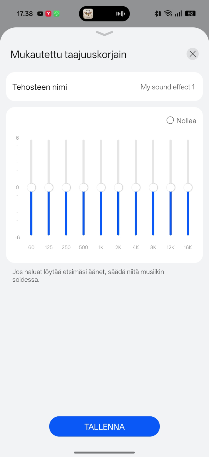- Sovelluksessa on tarjolla 10-kanavainen taajuuskorjain