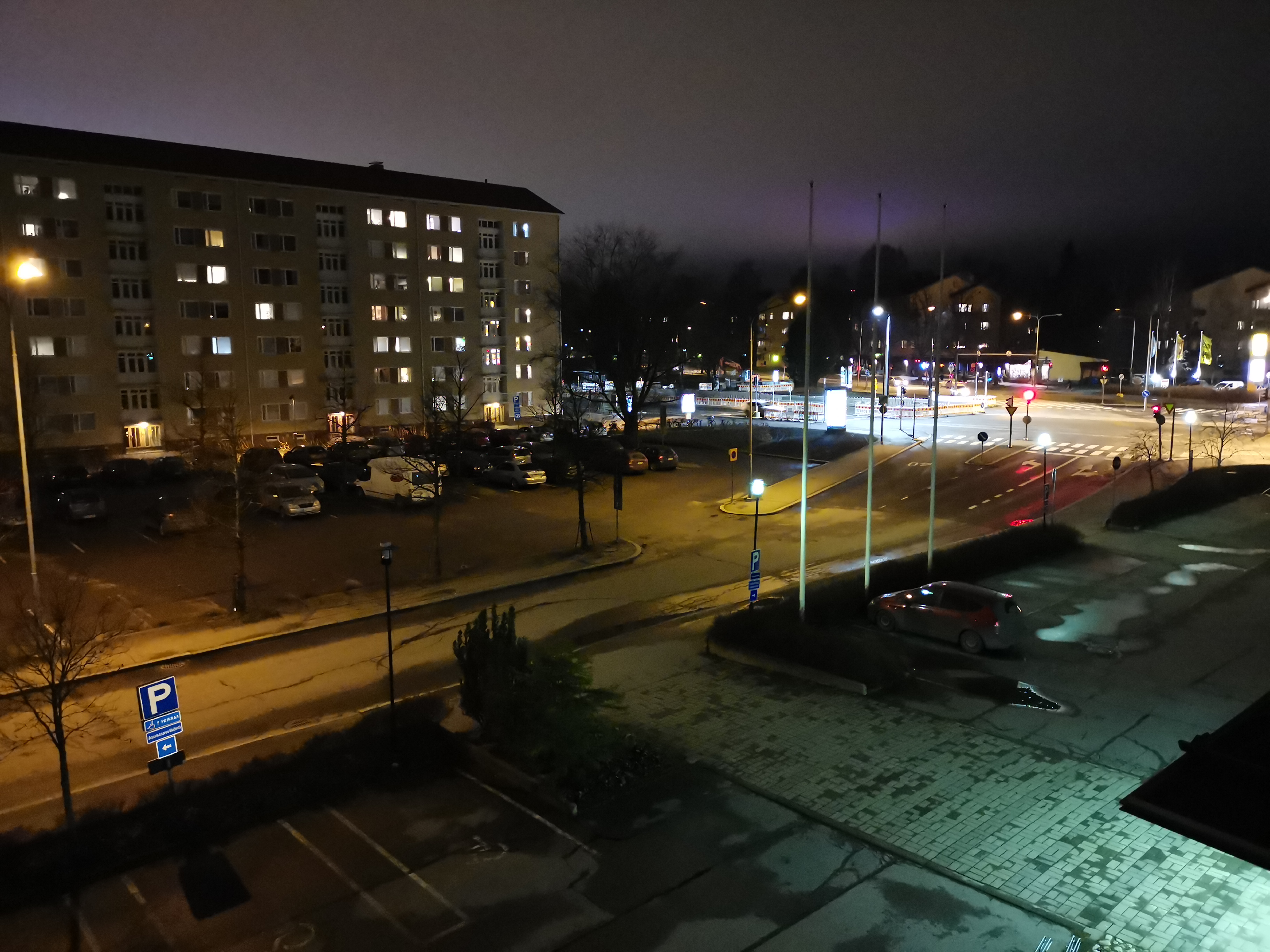 Otimme vertailuun mukaan myös 10 megapikselin kuvia tallentavan Yö-kuvaustilan, joka hyödyntää tekoälyä, kuvien yhdistämistä sekä useamman sekunnin pituista suljinaikaa, ilman että kuva tärähtää käsivaralta kuvattaessa. Esimerkkikuvaustilanne ei ollut vielä erityisen otollinen Yö-tilalle, sillä valoa oli tarjolla riittävästi myös peruskuvaustilalle, joten lopputulos on lähinnä hieman valoisampi sekä merkittävästi pehmeämpi. Vielä heikommassa valaistuksessa Yö-tilan edut olisivat kuitenkin tulleet paremmin esiin.