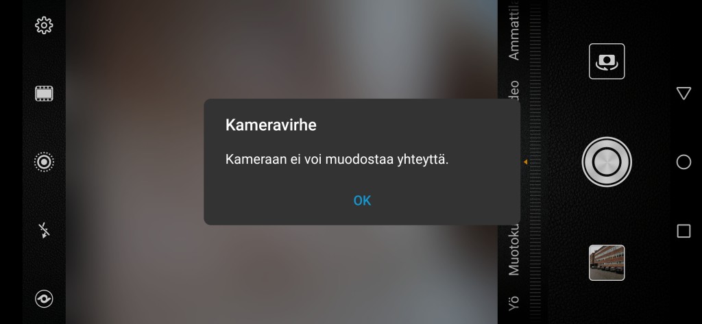 Kamerasovellukseen ei ole tehty suuria muutoksia sitten P20 Pron. Se käynnistyy ripeästi ja on lähes välittömästi kuvausvalmis. Myös tarkentaminen tapahtuu hyvin nopeasti ja kuvan ottaminen välittömästi suljinpainiketta painettaessa.