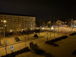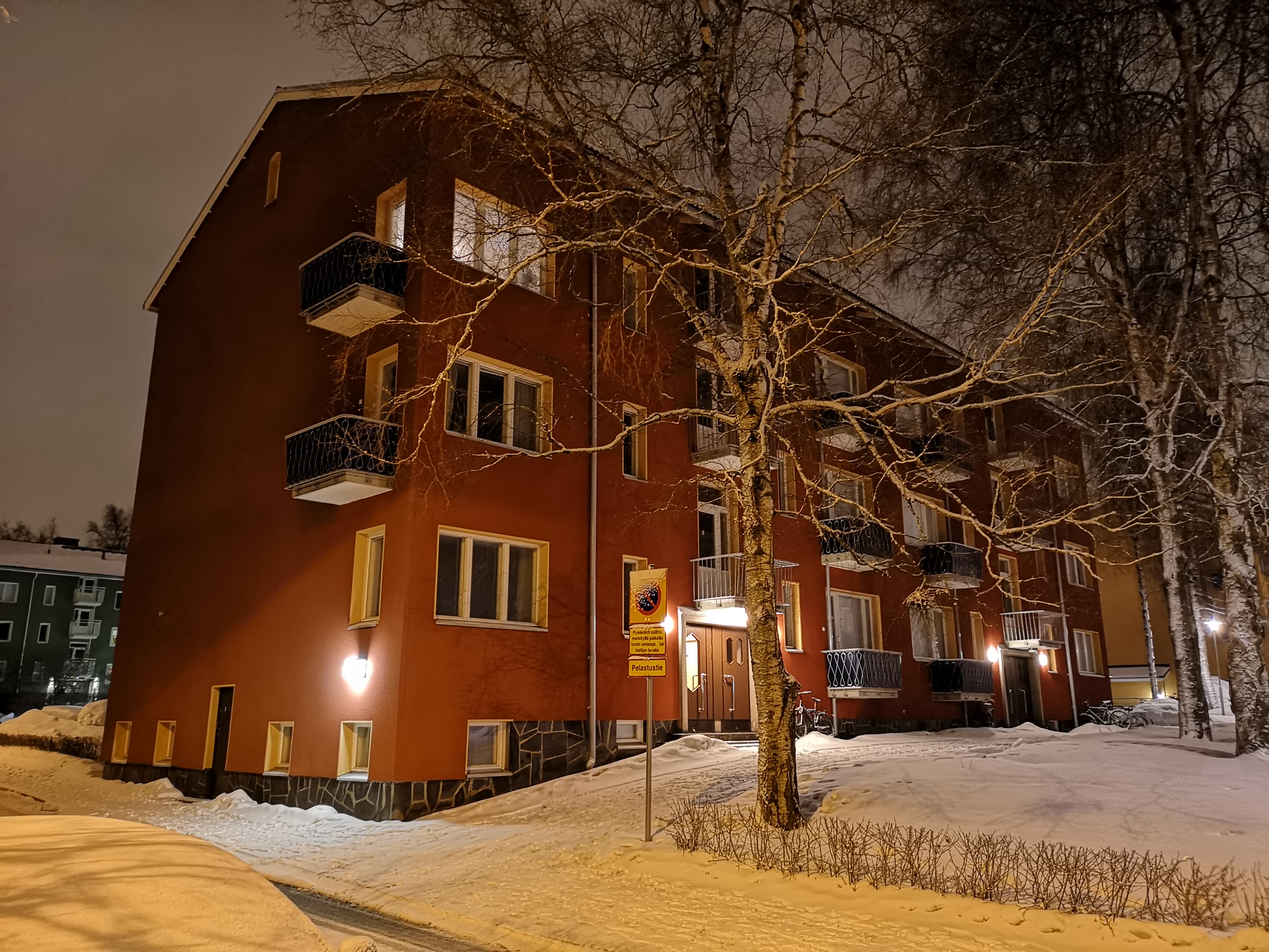 Hämärä- ja pimeäolosuhteissa P20 Pron kolmoiskamera jatkaa hyvää suorittamistaan jo tavallisella automaattitilalla kuvattaessa. Tavallisen automaattikuvaustilan lisäksi tarjolla on myös erityislaatuinen yötila, jonka toimintaan tutustumme erikseen hieman myöhemmin. Kamera pystyy tekemään kuvista valoisampia kuin miltä ne ihmissilmään näyttävät ja taltioi kamerapuhelimien mittapuulla erittäin hyvin yksityiskohtia sekä kuvauskohteen värejä. Kohina pysyy kuvissa hyvin aisoissa ja se ei muutu kokonaiskuvassa häiritseväksi edes korkeilla herkkyysarvoilla. Valkotasapainon kanssa ei havaittu kuvissa ongelmia.