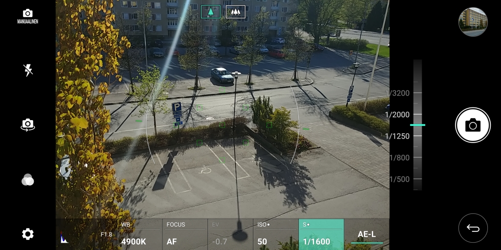 Manuaalikuvaustiloja on tarjolla omansa sekä valo- että videokuvaukseen. LG:n toteutus on varsin monipuolinen ja selkeä. Valokuvaustilassa tarjolla on säädöt valkotasapainolle, tarkennustavalle, valotuksen kompensoinnille, ISO-arvolle, suljinajalle sekä valotuksen mittaukselle. Asetuksista löytyy mahdollisuus tallentaa valokuvat RAW-muodossa.