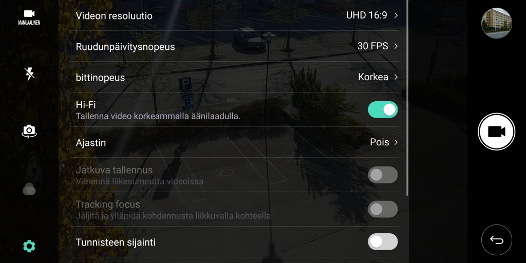 - Videokuvaus: 4K 30 FPS, 1080p 120 FPS, HiFi-äänitallennus (24-bit, 48 kHz)