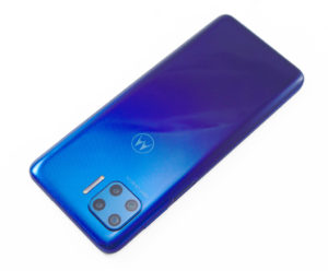 Puhelimen kokonaan muovinen rakenne on hieman harmillinen miinus muuten miellyttävästi muotoillussa paketissa. Samassa hintaluokassa useat kilpailijat tarjoavat joko lasia tai metallia, ellei molempia, rakennemateriaaleinaan. Muovi voi taata takakuoren materiaalina lasia paremman iskunkestävyyden, mutta vastapainona se kerää naarmuja huomattavasti lasia herkemmin. Lisäksi Motorolan käyttämä muovi jättää käsituntumaltaan heikohkon laatuvaikutelman ollen esimerkiksi Nokia 5.3:n käyttämää muovia ontomman tuntuista. Takakuoren pinta on sileä ja kiiltävä, mutta sen alla on sopivassa valaistuksessa näkyviin tuleva eräänlainen rasteriefekti. Positiivisena puolena puhelin ei kuitenkaan natise tai vääntyile rasituksenkaan alla.