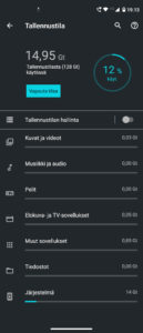 - 64 tai 128 Gt tallennustilaa (128 Gt mallissa vapaana 113 Gt), muistikorttipaikka (Max. 1 Tt)